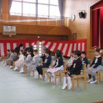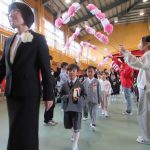 2年生から6年生までの上級生に迎えられ、少し緊張しているようでした。
