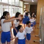 1年生は計測にまだ慣れていないので、6年生がお手伝いをします。