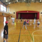 なかよし班で1年生から6年生までのみんなが楽しめる遊びを工夫して、校庭や体育館で元気に遊んでいました。