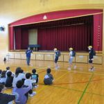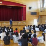 訓練の後には児童が体育館に集合し、不審な人物から様々な声をかけられたことを想定して、不審な人物に近づかない訓練を行いました。