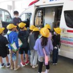 本や映像では見たことがある消防車や救急車、パトカーなどを間近で見ることができ、児童は大満足でした。