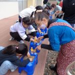 最後には、サツマイモの時と同じように願いを込めて、「大きくなあれ!」と女性会の皆さんと一緒に球根にエールを送りました。