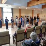 総合的な学習の時間に福祉をテーマに学習しているのでセンターの見学がめあてでしたが、せっかく訪問させていただくので、利用する方々に楽しんでいただこうと歌とリコーダーの合奏を披露することにしました。