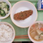 今日のメニューは ・ごはん ・牛乳 ・あおさ入りサーモンフライ ・昆布漬 ・豚汁 でした 「豚汁」は鹿児島県の郷土料理です。 豚肉は鹿児島県の特産品のひとつで、飼育頭数も全国一位だそうです。 おいしい給食、今日もごちそう様でした!