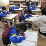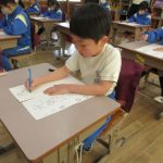 文字を書き終わると、「ふうー」と、大きく息を吐く児童もいました。自分の書いた文字に、皆、満足した様子でした。