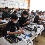 1月15日(木)に、校内書初め会が行われました。特別非常勤講師の先生にご指導いただき、一人一人心を込めてゆっくりと文字を書きました。