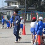 校庭でボールを上手にコントロールしながら走り回り、寒さも吹き飛ぶ楽しい時間でした。